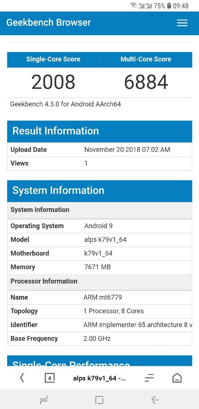 根据最新曝光的Geekbench跑分记录来看,联发科Helio P80型号为MT6779,单核心成绩为2008分,多核心为6884分,这意味着其终于用上了A75核心,主频为2GHz。这款工程机型配备了8GB运存,运行Android 9系统。