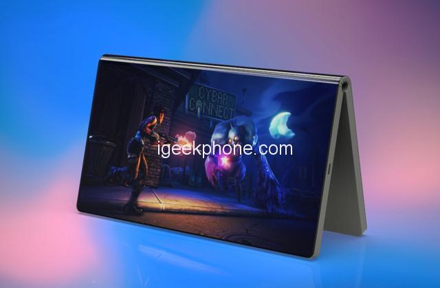所呈现的图像中的手机被设计成向外折叠。它是折叠时折,两端屏幕,就整体而言,手机的边框部分是非常好的大屏幕。我不知道真正的手机是不是可以达到这个水平。