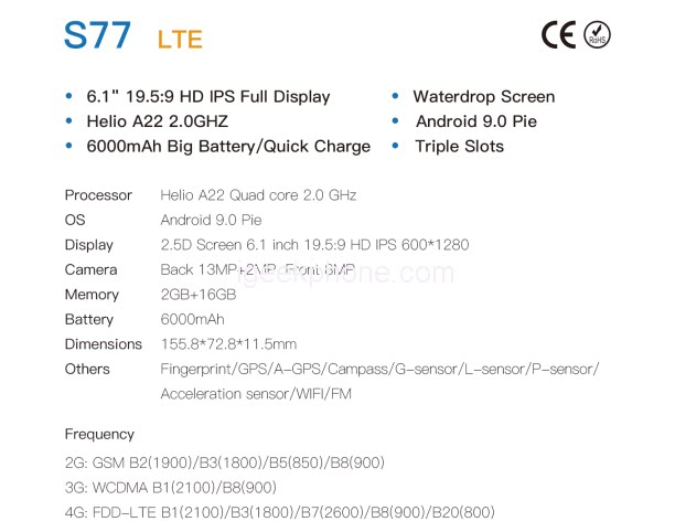 但6000mAh的电池是在约14-15小时的活动画面时担保人。不再需要摊铺机的银行。目前Android 9.0,指纹扫描仪和人脸检测,LTE,OTG,和Homtom S77将有3个SIM卡插槽和第三槽可被转换为SD卡插槽。这样还剩下两个SIM卡插槽的用户。