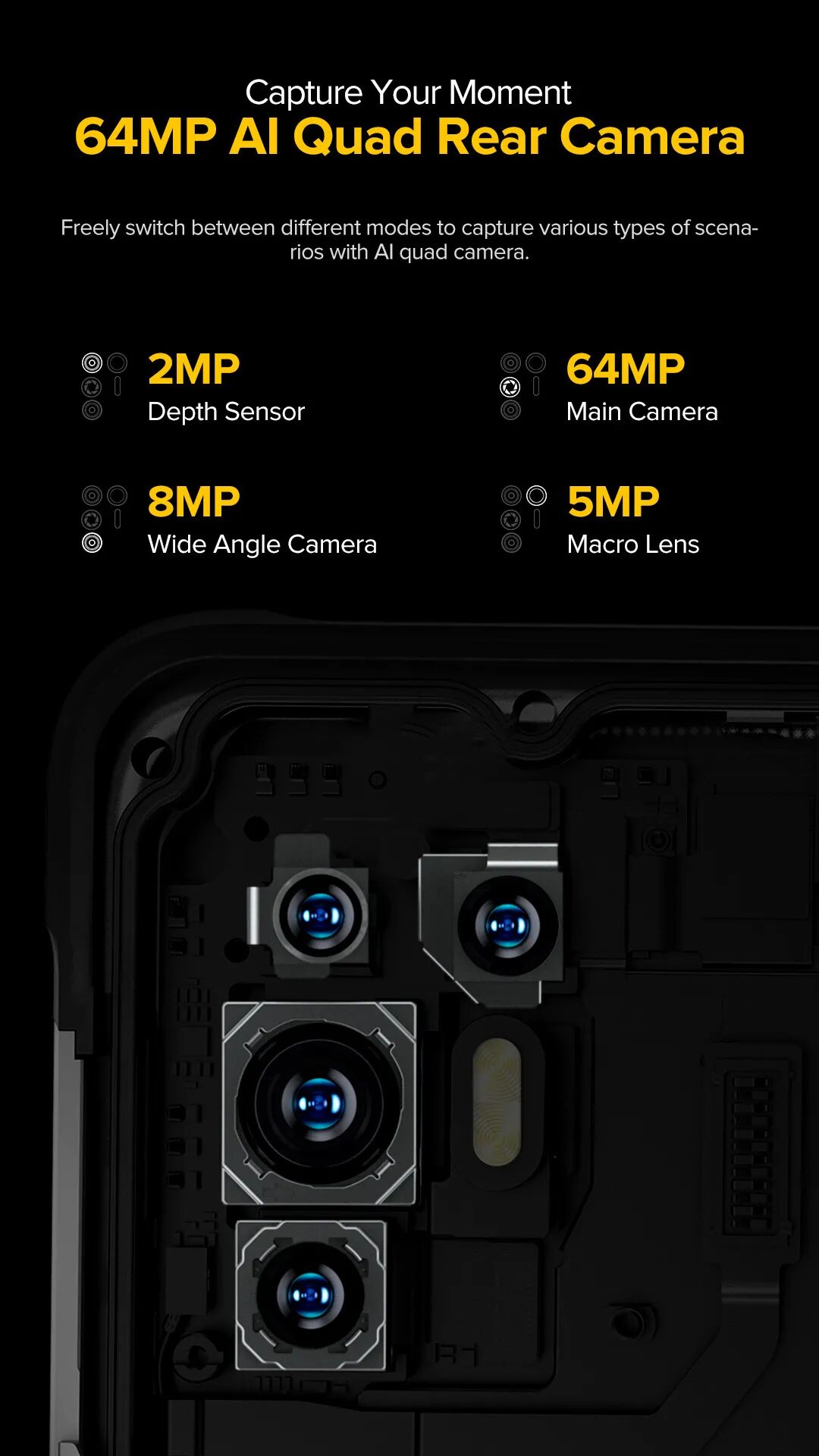 64MP Quad Rear Camera with Ultra-Wide Angle Lens
