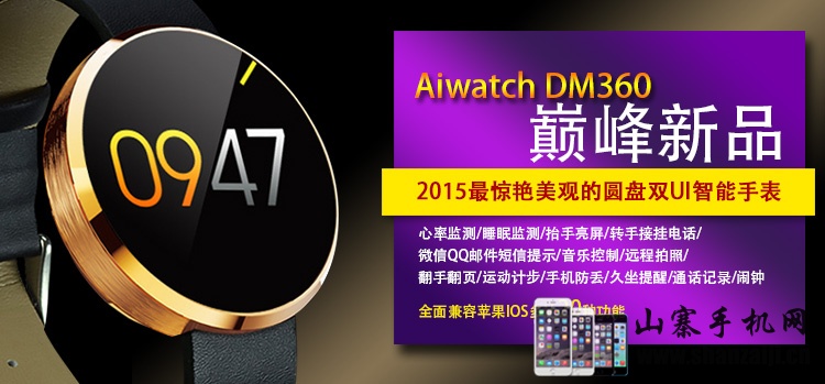 除去现有智能手表的等等功能,DM360 独有:1、支持安卓以及苹果手机;2、心率监测,明确的告知你是否在进行有氧运动;3、信息推送,短信、邮件等等全部推送手标端;4、语音控制,同步控制 苹果手机的Siri,直接语音拨打电话等等,彻底解放你的双手;5、抬手亮屏、翻手翻页,让手表操作简单方便。