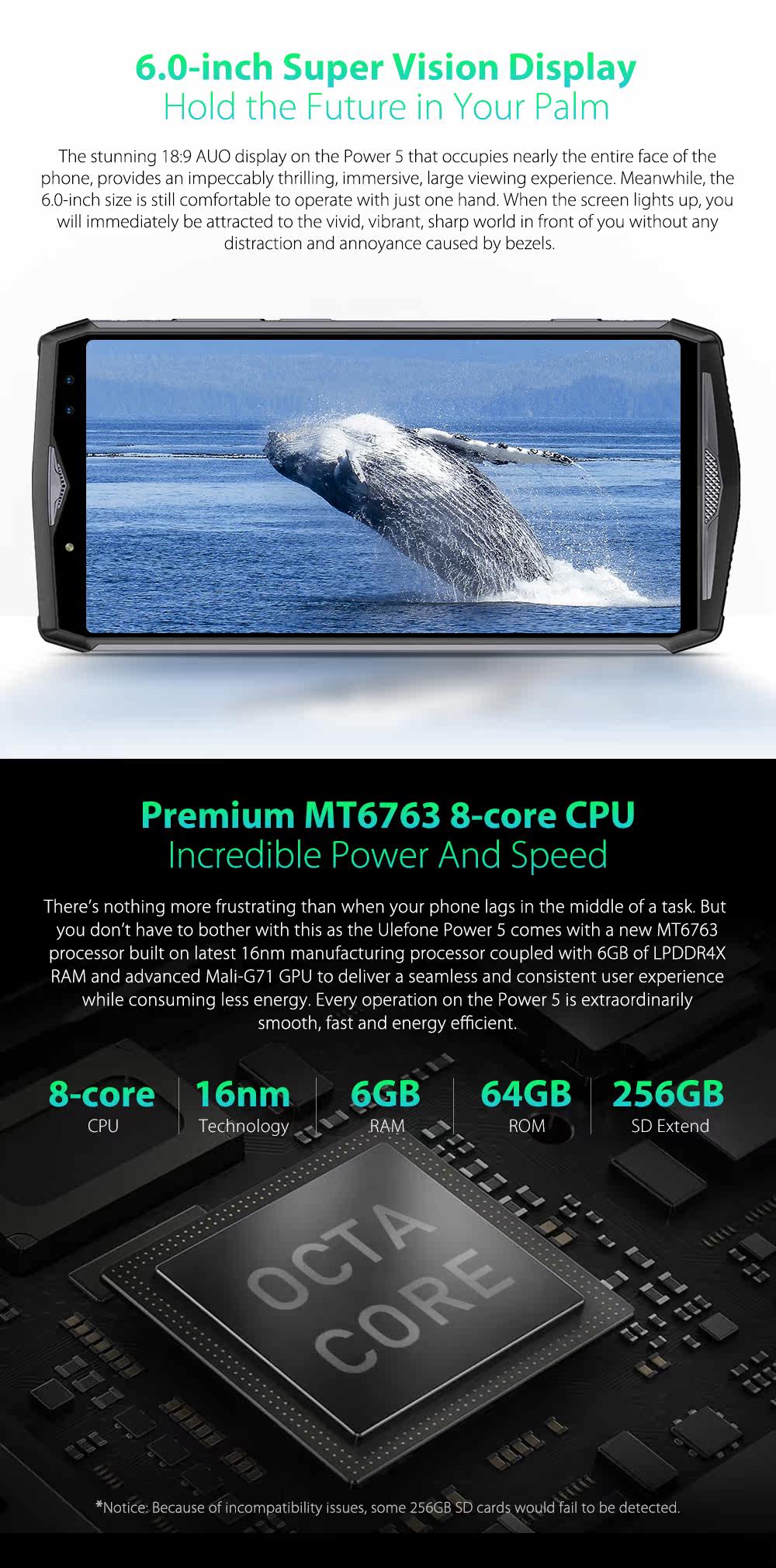 Ulefone power 5 13000W大电池手机,半月不充电