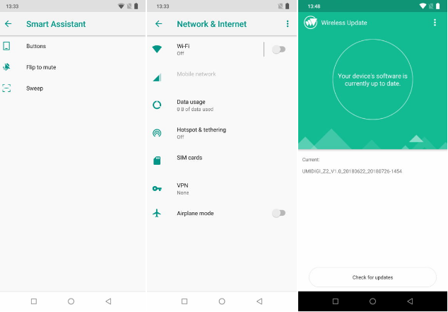 出厂操作系统采用的是Android 8.1。后期可以升级安卓9.0。在第一次开机后有一个106.43 mb的OTA更新!持续更新ROM以改进系统的不足,这一点和小米华为差不多。所以我们都希望Umidigi不断更新Z2.