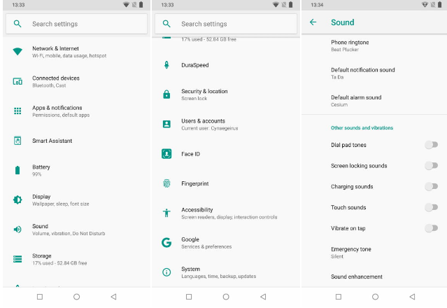 第一次开机快。以我使用12个月安卓8.1的经验来说没有一。在设置Umidigi添加了一些功能。智能助理选项隐藏导航栏,按钮,有翻转静音选项调用,警报或音乐和扫描QR扫描仪。脸解锁工作正常,人脸解锁相当不错,在低光照条件下也可以识别脸部解锁。在指纹设置有很多选项使用指纹传感器。例如你打电话或截图。在系统设置中你会发现关于手机的Android系统更新和Umidigi无线更新。谷歌最新的安全补丁级别的可能——这是把我想有点多。还有众所周知通知设置在这里。此设置允许微调控制前景和背景应用在基于切换的系统。如果你想要更多的性能你可以切换优先应用程序,它将停止在后台运行,不会有更新或通知。