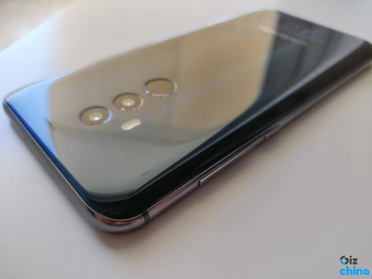 面板是2.5D玻璃,为了产品体验更好,由厂家专门订制了这块刘海屏,多花几百美元。后面板和侧板的方式连接在一起是完美的。闪亮的颜色渐变是产品的惊人之处。玻璃会收集指纹,如果你不喜欢黑色的硅胶,可以放在盒子里,换一个透明的硅胶套就可以完美享受玻璃面板光彩夺目。在面板的中心你可以找到双摄像头。在其左边底部有一个LED闪光灯和一个指纺传感器。我真的很喜欢传感器直径较大的两个同样大小的镜头,它让我的手指更容易解锁。