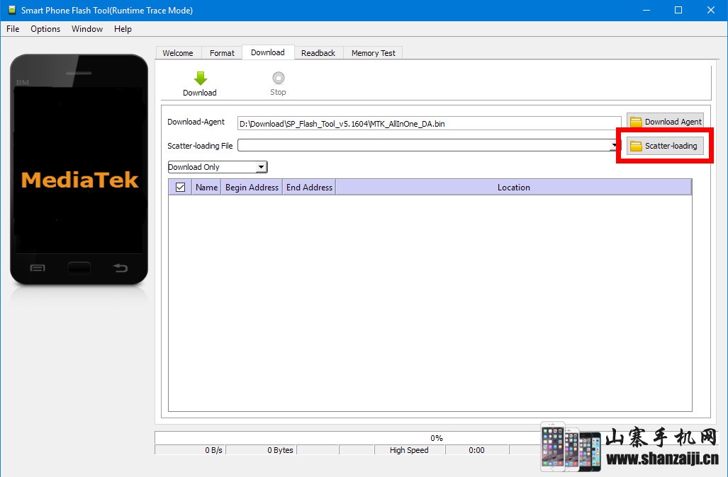 4. Open the scatter file, that you can find in the ROM folder.