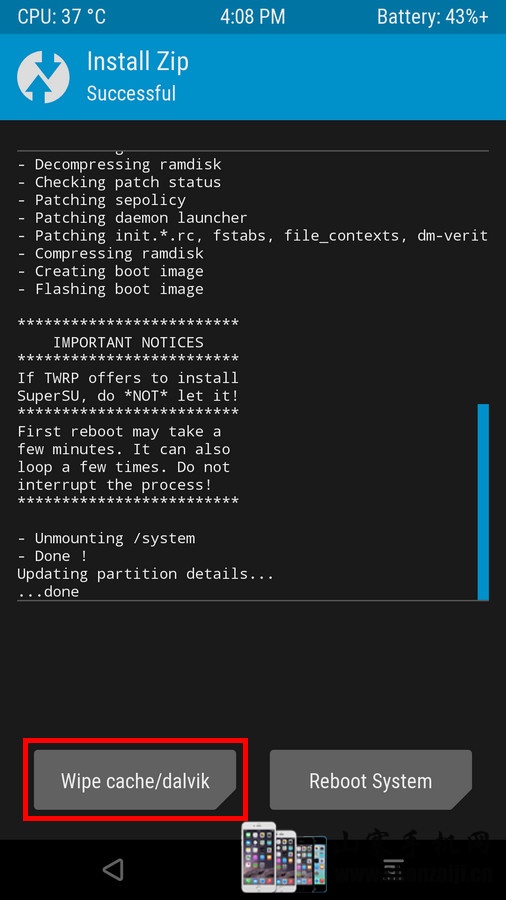- At some devices, after flashing TWRP, first you have to root your phone (install SuperSU or Magisk) or it won't be able to boot into the system.